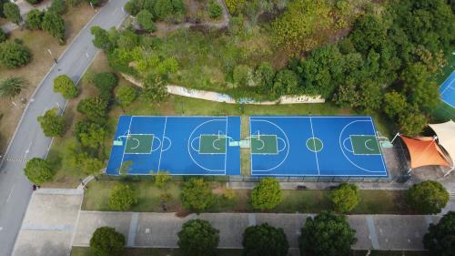 室外篮球场防滑塑胶面层采用EPDM/PU颗粒等材料,具备优异防滑性能,确保潮湿或出汗时仍安全;弹性适中缓冲冲击,降低关节损伤;抗紫外线、耐候性强,适应各种气候;耐磨耐用,维护简便,色彩持久,环保安全,符合国际标准,使用寿命长,是专业篮球场的理想选择。