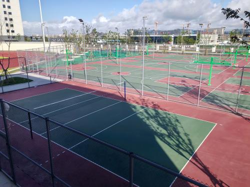 2025年由杭州宝力体育设施工程有限公司承建的温州职业中等专业学校一期迁建项目的篮球场、网球场、楼顶EPDM运动地面及塑胶跑道,均采用国标环保材料,配套智慧照明、围网及灯光工程,满足教学与赛事需求,助力打造现代化职业教育新样板。