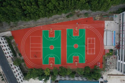 学校环保型塑胶篮球场建设方案摘要:采用硅PU、丙烯酸等环保材料,基础需C20混凝土,平整度≤3mm,排水坡度合理。施工工艺含底层摊铺、面层喷涂及标志线划线,确保防滑、回弹性能。环保优势包括耐用、低维护、可回收,符合绿色校园建设标准。