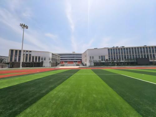 人造草坪足球场施工步骤:场地清理平整→放线测量→摊铺草坪并裁剪接缝→专用胶粘接→填充石英砂与弹性颗粒→刷毛梳理→检测验收。全程需确保接缝紧密、填充均匀、表面平整,最终验收需符合场地质量与安全规范。