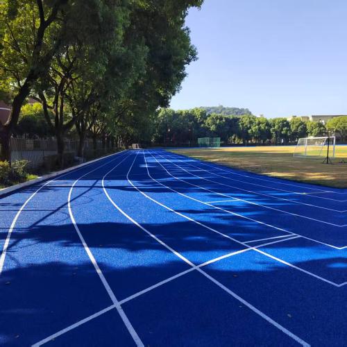 混合型跑道翻新需综合评估:外观应平整无裂痕、颜色均匀;厚度需达13-15mm且均匀;3米直尺高差≤3mm;弹性恢复率≥90%,冲击吸收率35%-50%;耐磨性≤0.8mm;防滑摩擦系数≥0.5;排水坡度约8‰,雨后40分钟无积水。若检测指标异常(如老化、磨损超标)则需翻新。