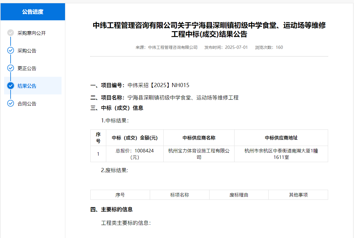下一篇:2025年7月3日中标宁海县城东小学运动场等修复工程
