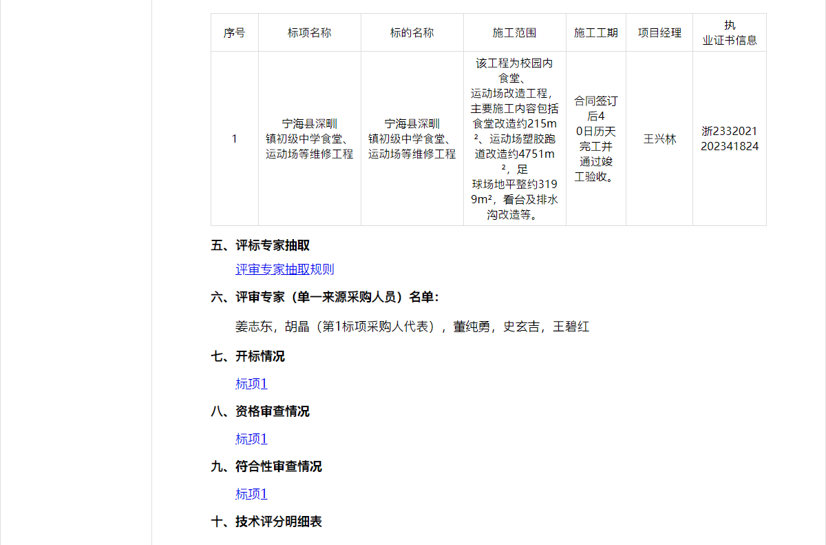 二、项目名称:宁海县深甽镇初级中学食堂、运动场等维修工程