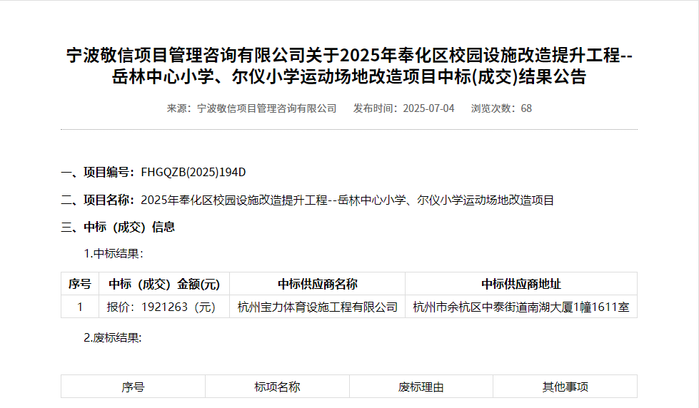 文章来源:浙江政府采购网 杭州宝力体育编辑,官网https://www.hzblty.com/,转载请注明出处。