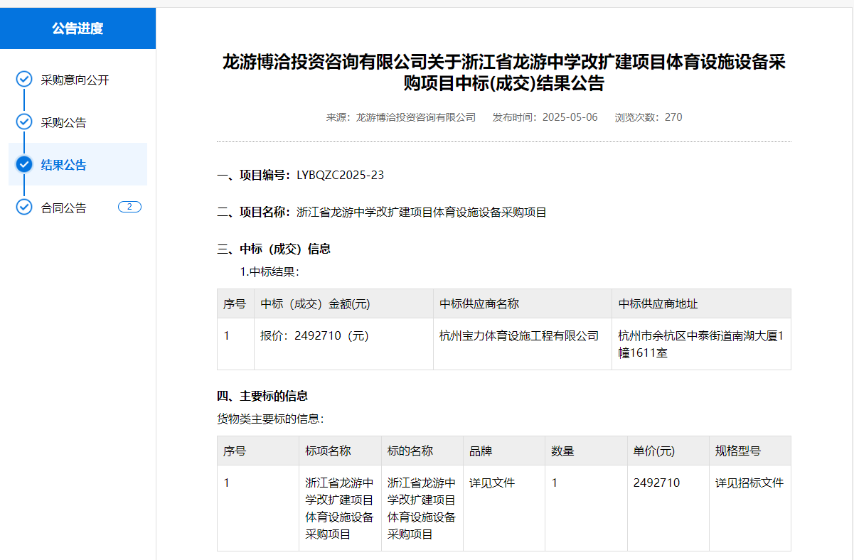 文章来源:浙江政府采购网 杭州宝力体育编辑,官网https://www.hzblty.com/,转载请注明出处。