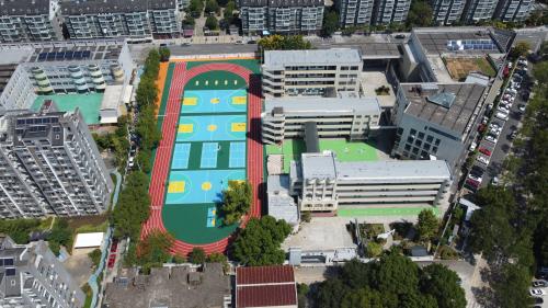 暑假开学前夕,富阳区委吴玉凤书记专程到富春湾新城上海外国语大学富阳富春湾新城双语学校进行考察,在实地踏勘学校操场时,专门表扬了田径跑道施工单位,吴书记说双语学校的田径跑道比富阳知名高中的田径跑道还做得好做得精。