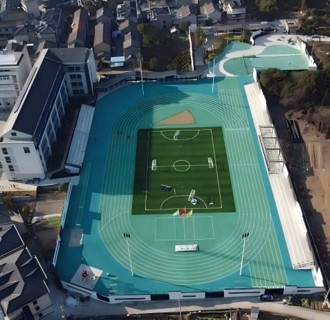 学校五人制人造草足球场专为校园设计,采用环保耐磨人造草皮,符合国际五人制标准尺寸。配备弹性缓冲层,减少运动损伤风险,维护成本低,适合日常教学、训练及小型比赛,是学校开展足球运动、提升学生体质的理想场地。