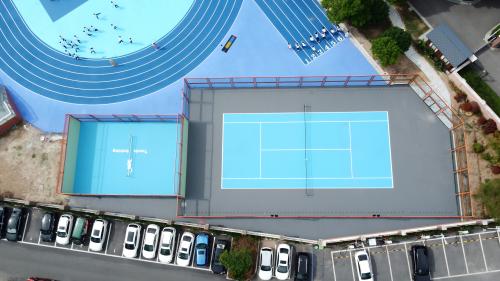 操场透气型塑胶跑道符合新国标GB36246-2018,具有优异透气排水性(雨后40分钟无积水)、弹性缓冲(冲击吸收率35-50%)、耐候环保(抗紫外线、无毒无害)及施工便捷(工期短、成本低)等性能,是学校及公共运动场地的理想选择。